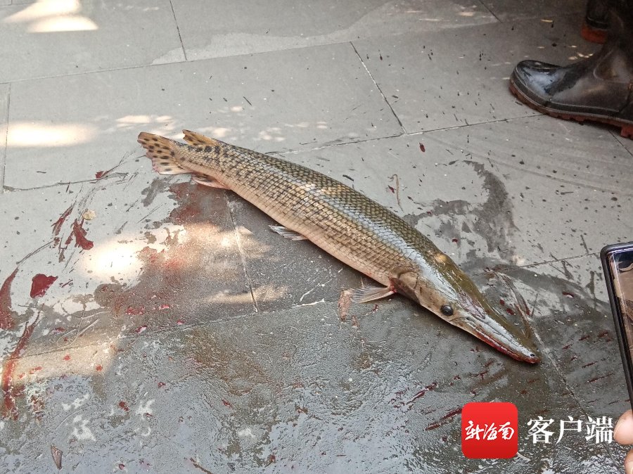 视频+多图 | 海口一小区池塘捞出一条鳄雀鳝 身长70厘米、牙齿锋利